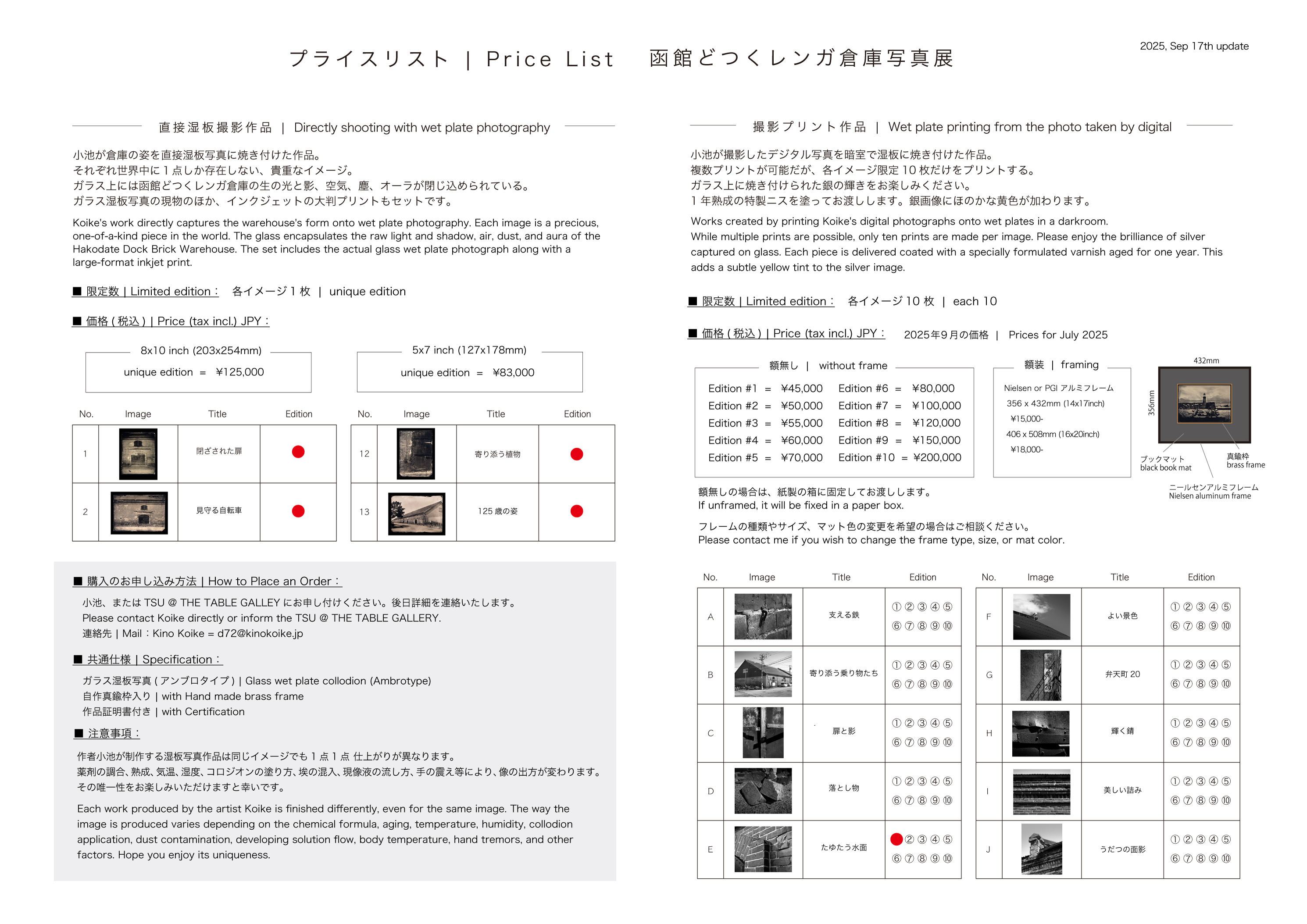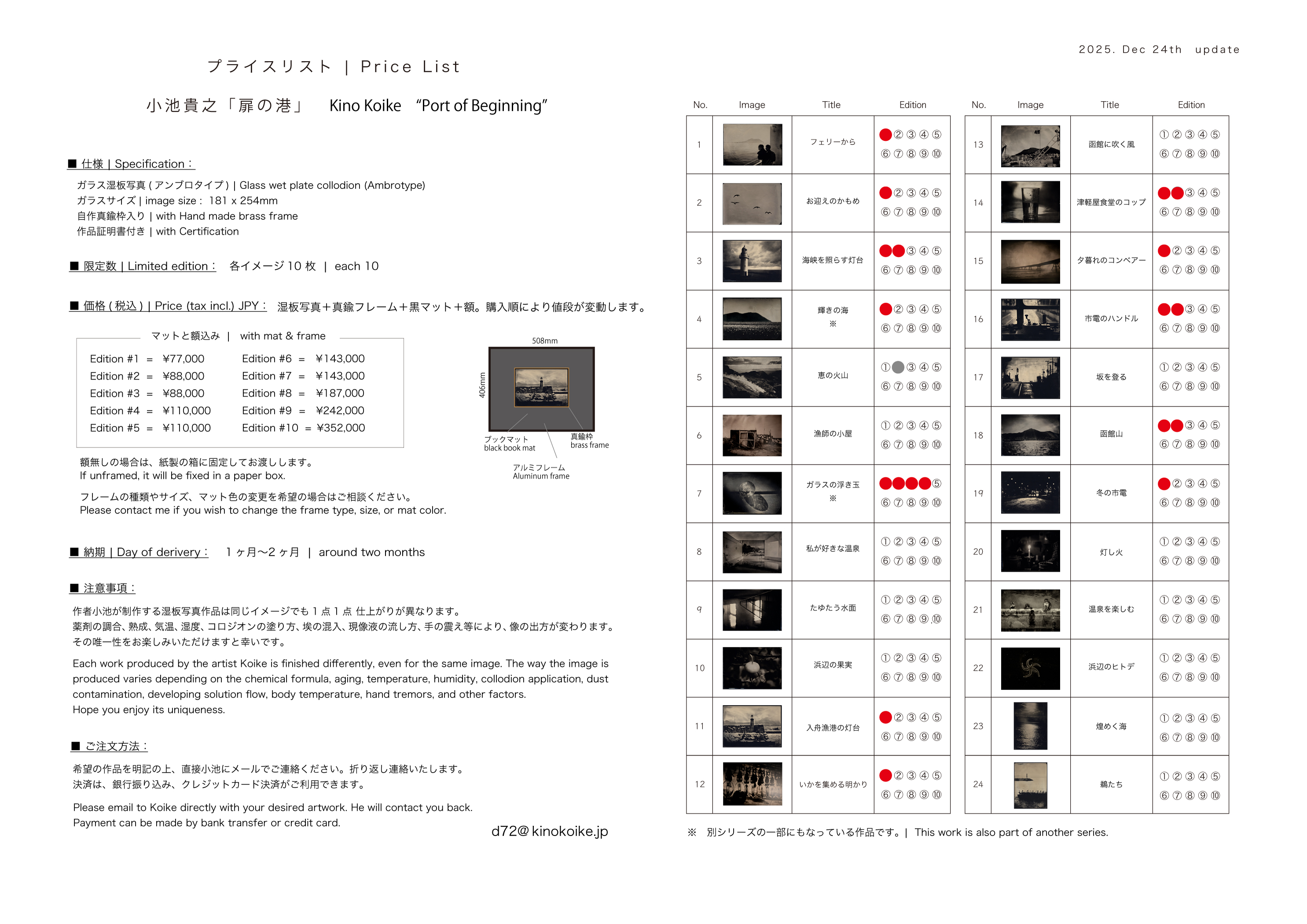 ・Price List - 浜さ | Hama sa _____ 鶏卵紙 | Albumen Print